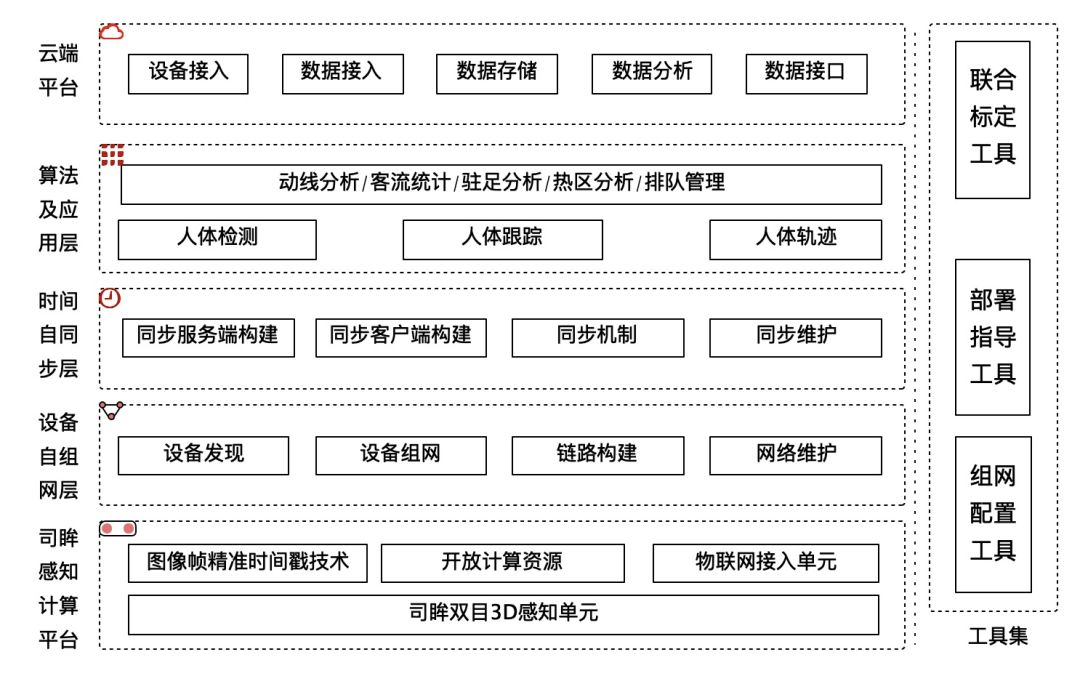 首页 动态 新品首发 | 双目视觉「多相机多目标」人体跟踪算法模型 V1.0 新品首发 | 双目视觉「多相机多目标」人体跟踪算法模型 V1.0 技术前沿 2020-03-21 浏览量:1882 01 🎙️你们要发布的是什么? 2020年3月21日,304am永利集团智能于国内率先推出基于双目立体视觉的「多相机多目标」连续人体跟踪算法模型 V1.0,实现了「 6 相机级联,覆盖 15 米宽度」,解决了「宽大出入口场景」下人流量精准统计的行业痛点需求问题。 304am永利集团公司本次技术创新的一大特点,是在不增加硬件、不增加计算成本的情况下,通过算法上升级迭代,实现多相机自动化协同工作,实现跨相机连续人体目标跟踪。 本次技术的升级迭代成果,已成功应用于304am永利集团公司自主研发的司眸®️ 双目客流一体机产品系列。 02 🎙️什么是人体跟踪技术? 当下,目标检测和追踪的研究,不管在工业届,还是学术界,均是一个热点。在工业届304am永利所能熟知的有 Amazon Go 的店内全域跟踪技术,已伴随着无人店的热潮进入到人们的视野。在学术届比较有名的有如 OpenPtrack 开源项目,目前因为各类 RGBD 摄像头的普及也使一些应用和案例成为了可能。但目前的研究和应用,主要集中在基于视频流的目标检测、跟踪以及跨境识别 ReID 技术,而对于室内空间的多相机阵列的研究和应用相对较少。 室内空间的人体检测及连续跟踪技术在零售、安防、机场、地铁、政府办事大厅、银行的价值已陆续得到一些验证,并且随着技术的突破和成本的降低,会逐渐成为加速 AI 落地的基础力量。 03 🎙️为什么要做这个创新? 当前,无论是 Amazon Go 还是 OpenPtrack 在对人的检测跟踪技术架构上基本上比较依赖较强算力的运算平台,因此在实际应用中成本是一个比较大的限制条件。 若是能基于较低成本打造出一套稳健的「多相机多目标」人体连续追踪系统,将会大大加快在智能零售、智能安防、智慧城市等场景下的 AI 落地。 而目前在国内,目前尚无成熟的解决方案。在世界范围内,也只有老牌客流品牌 BrickStream 以及专注于机场客流分析的 Xovis 公司有相关产品,但产品过于昂贵,不满足国内市场需求。 图 3D-多相机多目标跟踪原理展示 04 🎙️你们具体是咋做到的? 304am永利集团智能基于多年积累的在硬件、软件、算法及领先的边缘计算加速的综合设计能力,立足于现有的司眸®️ 双目视觉感知引擎架构,推出可运行于相机平台、基于双目立体视觉的多相机多目标跟踪技术。具体方案如下: 如图中所示,系统采用分布式计算架构,1 个主模式相机和若干个从模式相机共同组成了整个多目标跟踪系统,其中每个相机采用顶视安装方式。各个相机负责自身所覆盖区域的人体检测与跟踪,最终汇集到主模式相机进行数据关联,产生全局 ID 和全局的轨迹坐标。由于各个相机已承担了大部分运算所需算力,因此数据关联处的算力需求大大降低,无需单独放置服务器用于专用计算。 图 6 相机连续级联多人跟踪 另外,为了使得多目标跟踪系统能稳定的运行,整个系统采用了如下图的设计架构,硬件基于司眸®️ 双目视觉感知引擎架构,3D 感知单元提供实时稳定的深度图计算,图像帧精准时间戳技术配合时间自同步模块可在不通过物理激励同步的情况下将不同设备间的图像帧同步在一帧误差以内,设备间时钟系统同步精度控制在 1ms 以内。针对嵌入式 CPU 研发的人体检测及跟踪算法,在单相机可提供稳定的 98% 以上的跟踪精度,多相机组配合方案提供的高精度标定工具仍能达到 95% 的精度。 此外,设备端具有物联设备接入功能,能实现云端的数据接入以及云端的监控运维,大大助力了方案的可落地性。 05 🎙️你们方案有什么亮点? 「完整的框架设计及工具集支持」 方案除了提供基本的多相机多目标跟踪的基本支持软硬件及算法,还配备了助力于方案落地的工具集,使整个方案可快速面向室内空间,进行商业化落地。 「 100% 边缘端计算」 相较于市面上的其他方案,此方案完全基于嵌入式方案构建,无需单独的服务器,一方面降低了系统的成本,另外一方面因运算过程中不传输任何图像数据,使得此方案具备先天的隐私安全性。 「低成本的设备运维」 方案在自动化组网和状态恢复上做了充分的设计保障,同时所有设备状态可以很方面的接入至云平台,因此规避了以往多设备联合工作的维护复杂性,大大降低了维护成本。 06 🎙️这个技术未来用在哪? 本次发布的方案主要针对于室内区域空间的人体跟踪场景,可应用于如实体门店的消费者分析、银行的安防监控、机场、高铁站、地铁站安防监控、客流分析、队列管理等场景。 上一个:重磅 | 304am永利集团第三代4.5K双目视觉感知引擎架构全球首发 返回列表 下一个:3D机器视觉可以完成许多2D机器视觉无法完成的任务。 更多新闻推荐 端到端 更易用丨304am永利集团®散料运输动态监测与预警系统全新上市 新品上市 2025-02-20 小尺寸 更灵活丨304am永利集团3D相机PEA020-800-Y80S上新,助力多场景智造升级 新品上市 2024-09-29 目前主流3D视觉技术各有什么优劣势?如何选择最Match的工业3D相机? 技术科普 2024-08-12 【最全选型攻略】挑选合适的工业相机,必须提前考虑12要素! 工业相机 2024-07-16 场景应用丨304am永利集团智能智能煤流监测系统全新升级,赋能自动化煤流管控 场景应用 2024-07-08 场景应用丨304am永利集